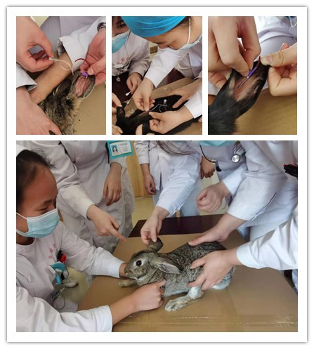 穿刺操作前,血液病科杜红新护士长将整个穿刺过程的重要环节如何消毒、穿刺的注意事项、技巧和常见的问题为护理人员一一耐心讲解、示范,要求每个病区护士长第一个上阵,以身作则带动每位护士人人过关。要在兔子身上穿刺时,保证一针见血,无渗血渗液,无起包,兔子无痛苦感,才算过关。