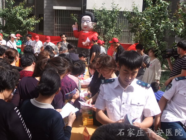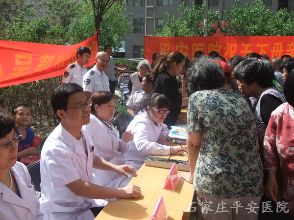 2013年5月12日是难得的双节--母亲节和护士节,以平安医院肾病科张建朋主任为首的医疗小组跟随小吴帮帮团成员来到平安医院对面绿家小区为居民做免费体检。同时,平安医院双节活动正式启动,凡是电话预约和现场预约的母亲们,我们都将为其安排时间做一系列的妇科检查。